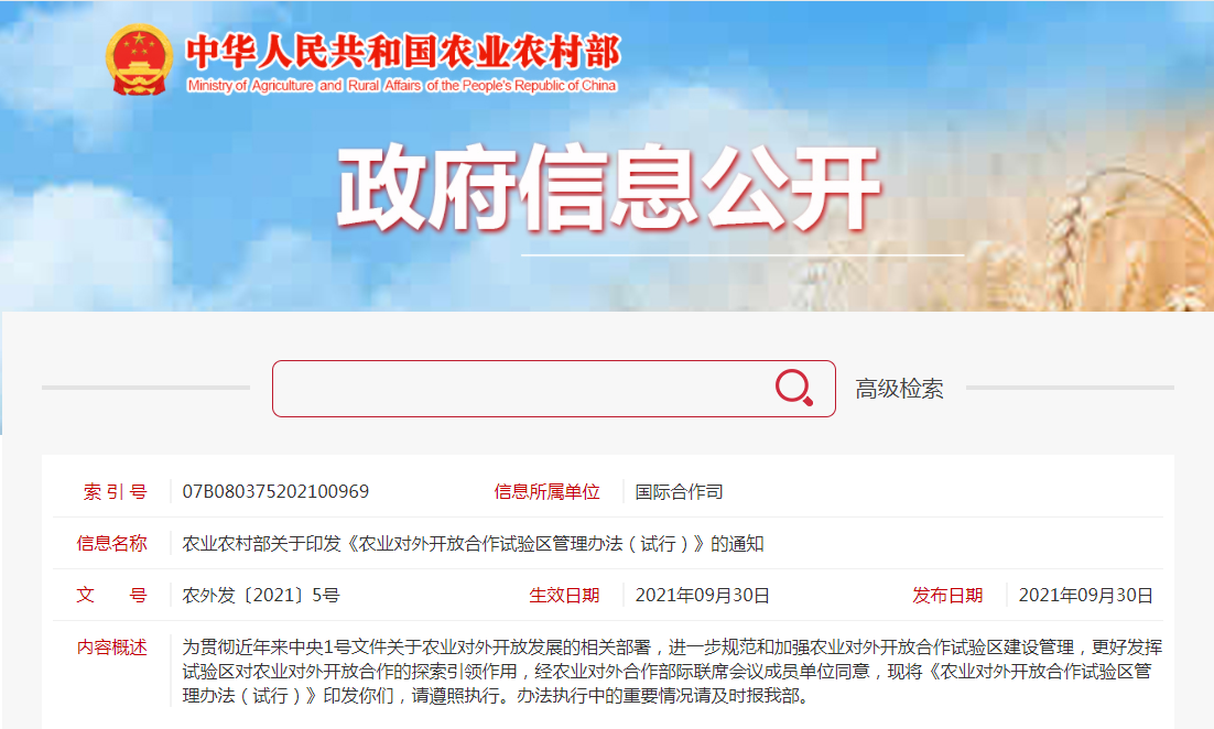 第一章 總則第一條 為進(jìn)一步規(guī)范和加強(qiáng)農(nóng)業(yè)對(duì)外開放合作試驗(yàn)區(qū)建設(shè)管理,更好發(fā)揮試驗(yàn)區(qū)對(duì)農(nóng)業(yè)對(duì)外開放合作的探索引領(lǐng)作用,根據(jù)國(guó)家有關(guān)政策、法規(guī)和農(nóng)業(yè)對(duì)外合作部際......