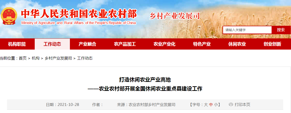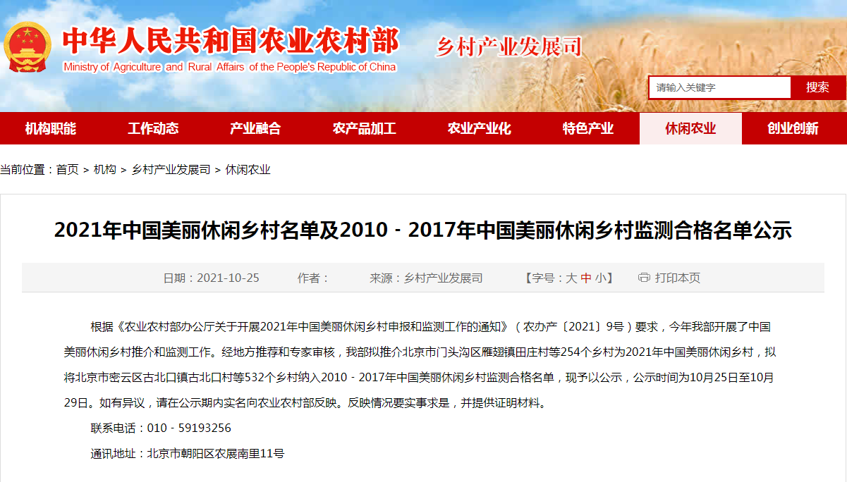 根據(jù)《農(nóng)業(yè)農(nóng)村部辦公廳關(guān)于開展2021年中國(guó)美麗休閑鄉(xiāng)村申報(bào)和監(jiān)測(cè)工作的通知》(農(nóng)辦產(chǎn)〔2021〕9號(hào))要求,今年我部開展了中國(guó)美麗休閑鄉(xiāng)村推介和監(jiān)測(cè)工作。經(jīng)地......