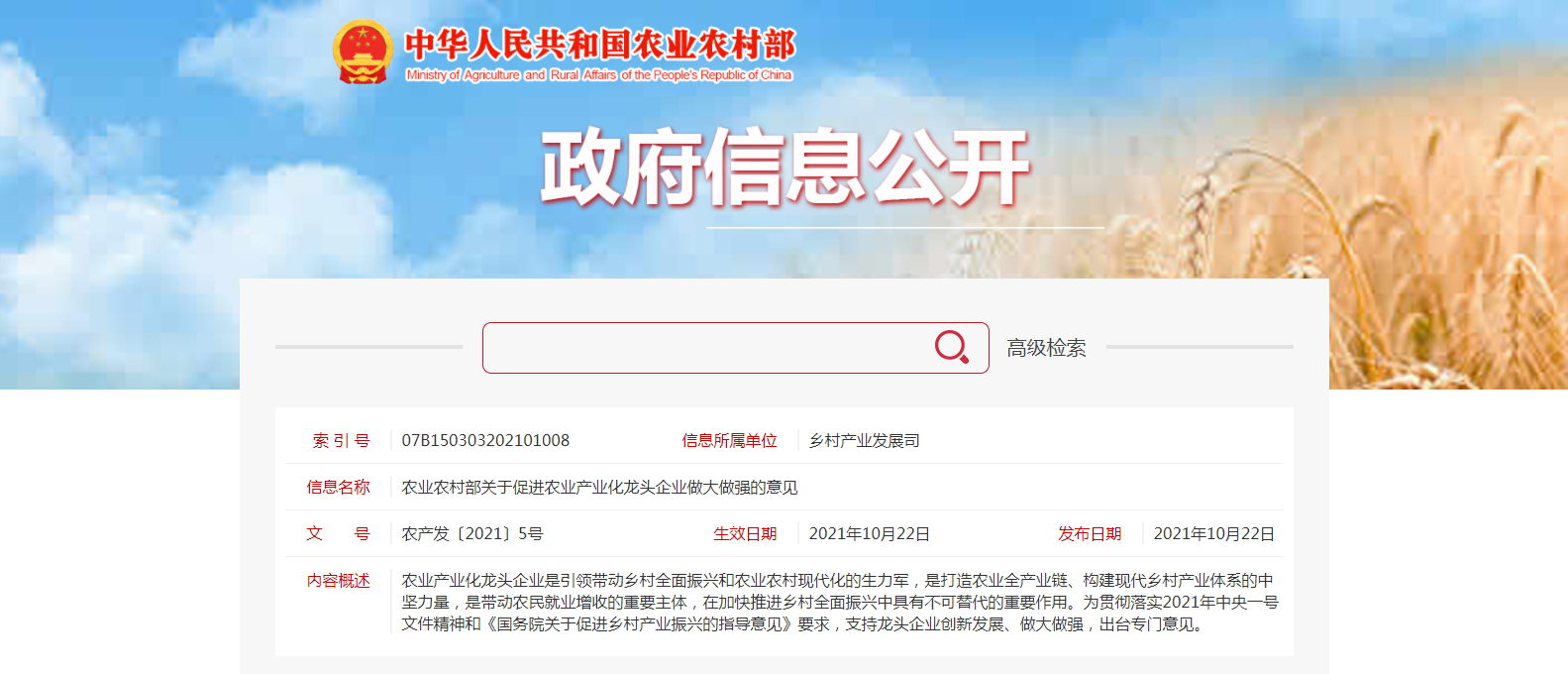農(nóng)業(yè)產(chǎn)業(yè)化龍頭企業(yè)(以下簡(jiǎn)稱“龍頭企業(yè)”)是引領(lǐng)帶動(dòng)鄉(xiāng)村全面振興和農(nóng)業(yè)農(nóng)村現(xiàn)代化的生力軍,是打造農(nóng)業(yè)全產(chǎn)業(yè)鏈、構(gòu)建現(xiàn)代鄉(xiāng)村產(chǎn)業(yè)體系的中堅(jiān)力量,是帶動(dòng)農(nóng)民就業(yè)增收......