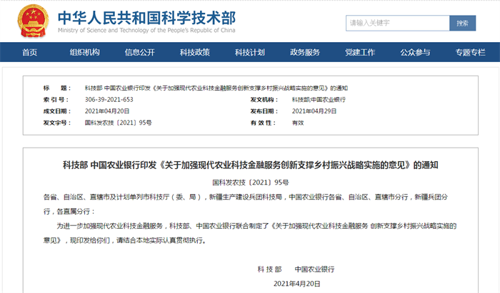各省、自治區(qū)、直轄市及計(jì)劃單列市科技廳(委、局),新疆生產(chǎn)建設(shè)兵團(tuán)科技局,中國農(nóng)業(yè)銀行各省、自治區(qū)、直轄市分行,新疆兵團(tuán)分行,各直屬分行: 為進(jìn)一步加強(qiáng)現(xiàn)代農(nóng)......