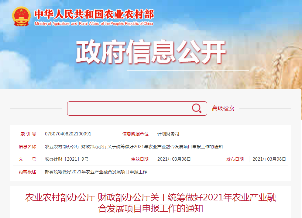 2021年,在對以前年度符合條件的項目給予延續(xù)支持的基礎上,中央財政支持新創(chuàng)建50個國家現(xiàn)代農(nóng)業(yè)產(chǎn)業(yè)園、50個優(yōu)勢特色產(chǎn)業(yè)集群、300個農(nóng)業(yè)產(chǎn)業(yè)強鎮(zhèn),推動鄉(xiāng)村產(chǎn)......