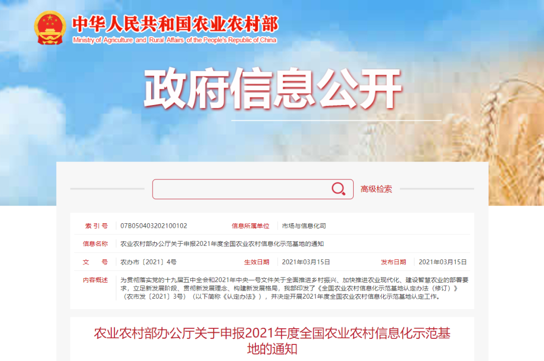 5月31日截止!全國農(nóng)業(yè)農(nóng)村信息化示范基地開始申報啦!...