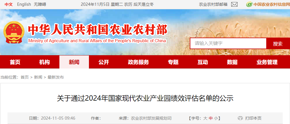 按照《農業農村部辦公廳關于開展2022年批準建設的國家現代農業產業園績效評估工作的通知》(農辦規〔2024〕17號)要求,經產業園所在地人民政府申請、省級農業農......