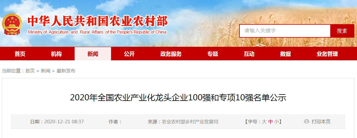 按照《中國(guó)農(nóng)業(yè)產(chǎn)業(yè)化龍頭企業(yè)協(xié)會(huì)關(guān)于開(kāi)展全國(guó)農(nóng)業(yè)產(chǎn)業(yè)化龍頭企業(yè)100強(qiáng)推介活動(dòng)的通知》要求,經(jīng)企業(yè)自愿申報(bào)和專家審核,擬將中糧集團(tuán)有限公司等確定為2020年全國(guó)......