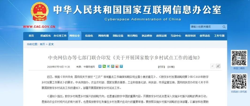 近日,根據(jù)《中共中央 國務(wù)院關(guān)于抓好“三農(nóng)”領(lǐng)域重點(diǎn)工作確保如期實(shí)現(xiàn)全面小康的意見》、《數(shù)字鄉(xiāng)村發(fā)展戰(zhàn)略綱要》和《2020年數(shù)字鄉(xiāng)村發(fā)展工作要點(diǎn)》的要求,中央網(wǎng)......
