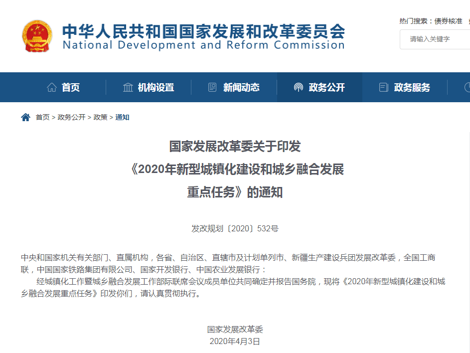 國家發(fā)展改革委關(guān)于印發(fā)《2020年新型城鎮(zhèn)化建設(shè)和城鄉(xiāng)融合發(fā)展重點(diǎn)任務(wù)》的通知...