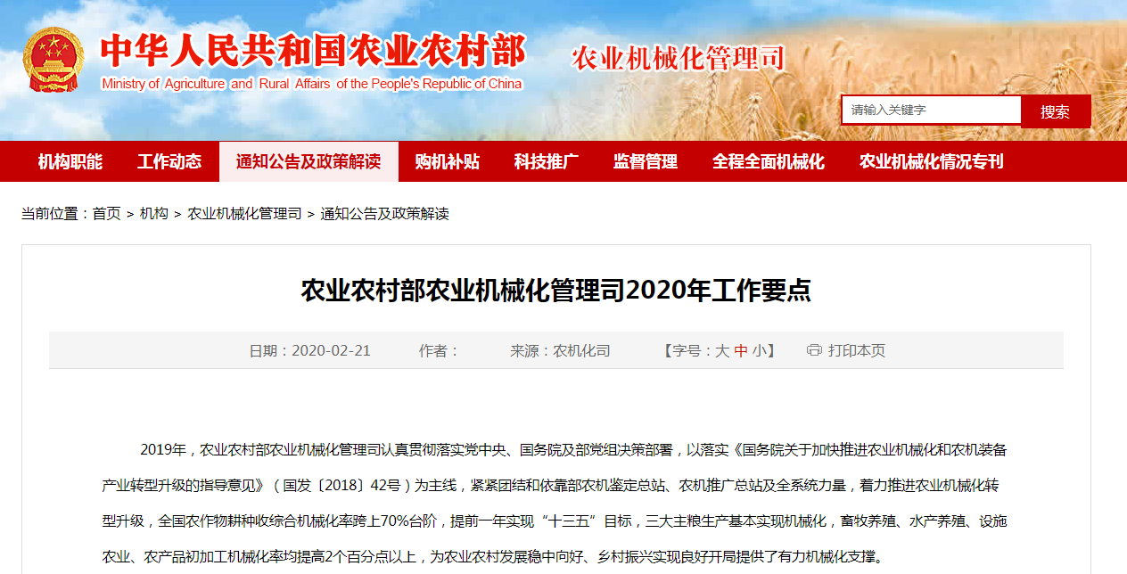 農(nóng)業(yè)農(nóng)村部農(nóng)業(yè)機(jī)械化管理司2020年工作要點(diǎn)...