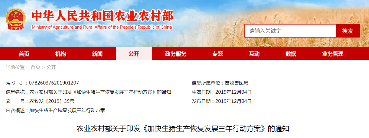 為貫徹落實(shí)黨中央、國(guó)務(wù)院決策部署,加快生豬生產(chǎn)恢復(fù)發(fā)展,我部制定了《加快生豬生產(chǎn)恢復(fù)發(fā)展三年行動(dòng)方案》。...