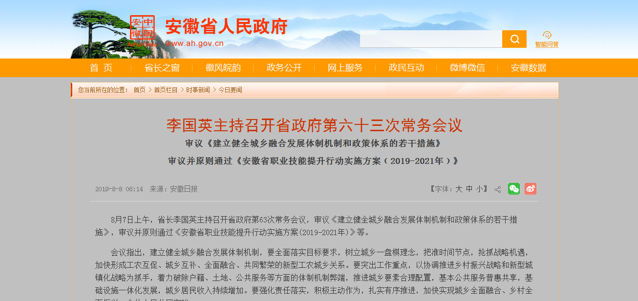 省長李國英主持召開省政府第63次常務(wù)會(huì)議,審議《建立健全城鄉(xiāng)融合發(fā)展體制機(jī)制和政策體系的若干措施》等。...