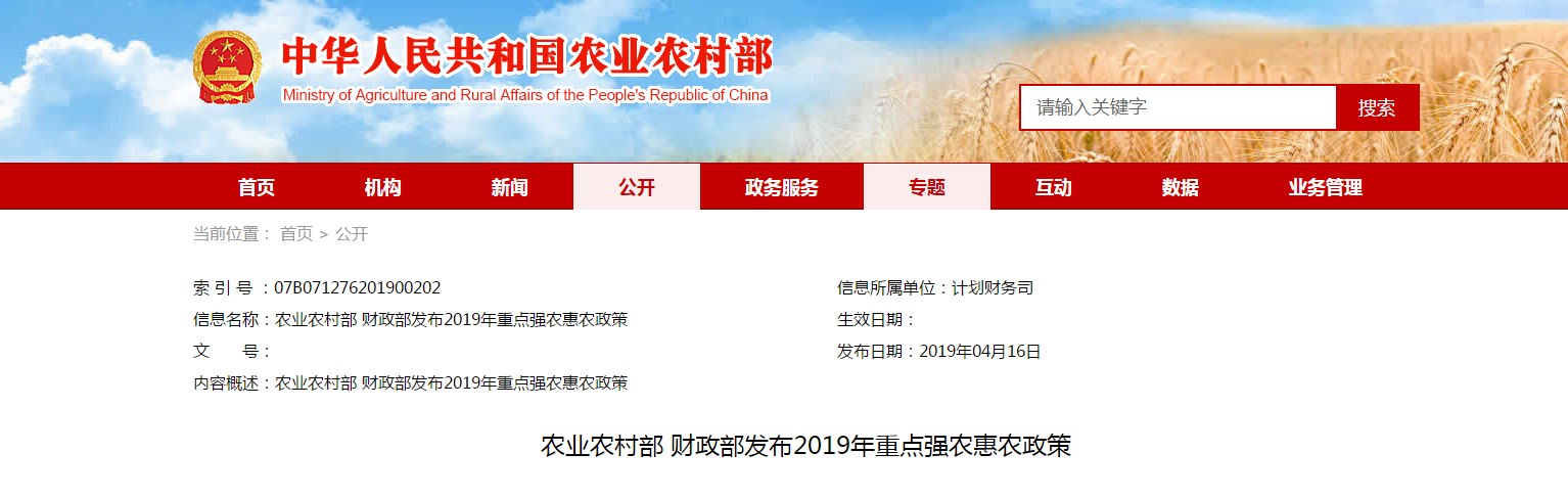 2019年,貫徹落實中央農(nóng)村工作會議、中央1號文件和全國“兩會”精神,圍繞實施鄉(xiāng)村振興戰(zhàn)略,深入推進(jìn)農(nóng)業(yè)供給側(cè)結(jié)構(gòu)性改革,國家將繼續(xù)加大支農(nóng)投入,強(qiáng)化項目統(tǒng)籌整......