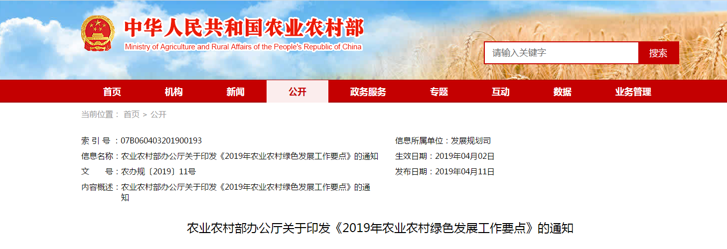 為貫徹落實中辦國辦《關(guān)于創(chuàng)新體制機(jī)制推進(jìn)農(nóng)業(yè)綠色發(fā)展的意見》和2019年中央一號文件精神,按照中央農(nóng)村工作會議、全國農(nóng)業(yè)農(nóng)村廳局長會議部署要求,努力提升農(nóng)業(yè)農(nóng)村......