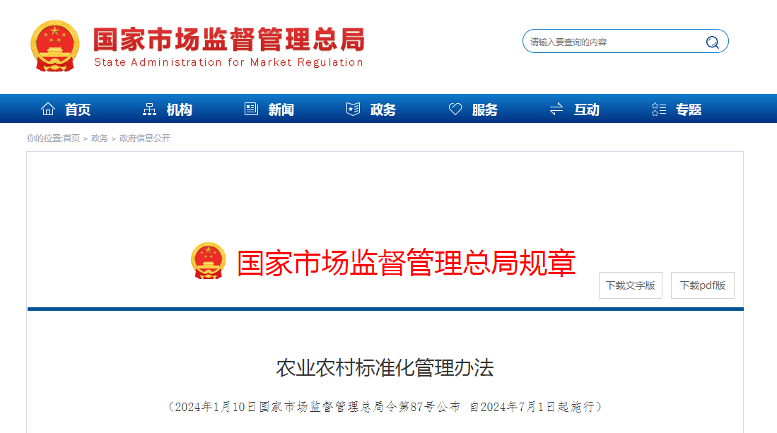 第一條 為了加強農業農村標準化工作,推進農業農村現代化,根據《中華人民共和國標準化法》,制定本辦法。第二條 本辦法所稱農業農村標準(含標準樣品),是指種植業、林......