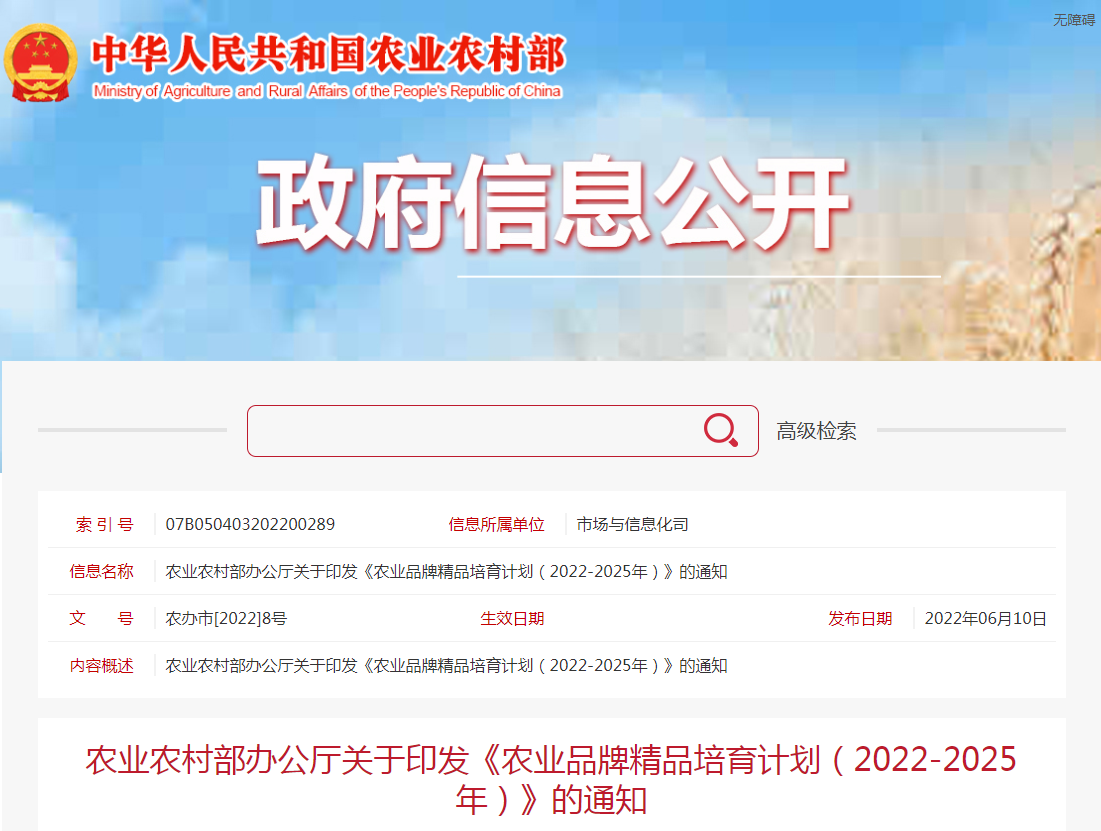 各省、自治區(qū)、直轄市農(nóng)業(yè)農(nóng)村(農(nóng)牧)廳(局、委),新疆生產(chǎn)建設(shè)兵團農(nóng)業(yè)農(nóng)村局: 為深入貫徹中央農(nóng)村工作會議、中央一號文件精神,加快農(nóng)業(yè)品牌打造,夯實基礎(chǔ)支撐......