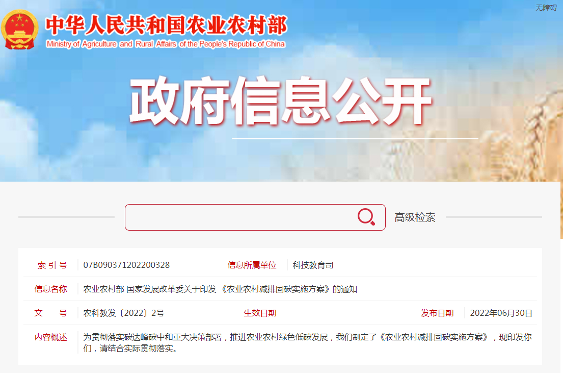 省、自治區(qū)、直轄市農(nóng)業(yè)農(nóng)村(農(nóng)牧)廳(局、委)、發(fā)展改革委,新疆生產(chǎn)建設(shè)兵團農(nóng)業(yè)農(nóng)村局、發(fā)展改革委:為貫徹落實碳達(dá)峰碳中和重大決策部署,推進農(nóng)業(yè)農(nóng)村綠色低碳發(fā)展......