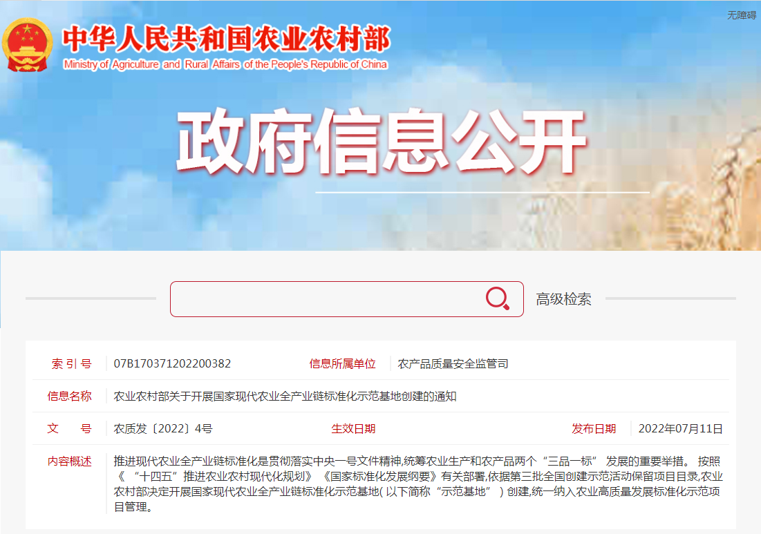 各省、自治區(qū)、直轄市農(nóng)業(yè)農(nóng)村(農(nóng)牧) 廳(局、委) ,新疆生產(chǎn)建設(shè)兵團農(nóng)業(yè)農(nóng)村局: 推進現(xiàn)代農(nóng)業(yè)全產(chǎn)業(yè)鏈標(biāo)準(zhǔn)化是貫徹落實中央一號文件精神,統(tǒng)籌農(nóng)業(yè)生產(chǎn)和......