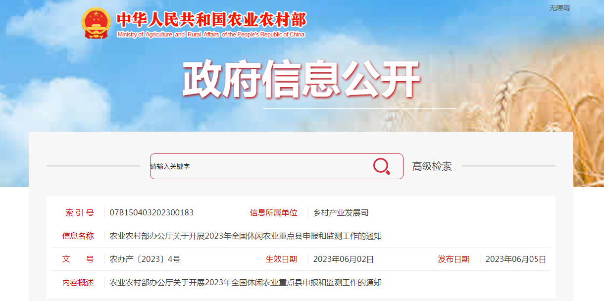 各省、自治區(qū)、直轄市農(nóng)業(yè)農(nóng)村(農(nóng)牧)廳(局、委),新疆生產(chǎn)建設(shè)兵團農(nóng)業(yè)農(nóng)村局:為深入貫徹落實中央農(nóng)村工作會議和《中共中央、國務(wù)院關(guān)于做好2023年全面推進鄉(xiāng)村振......